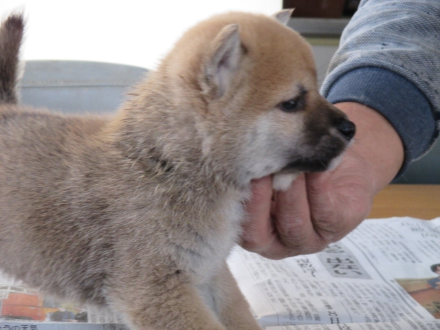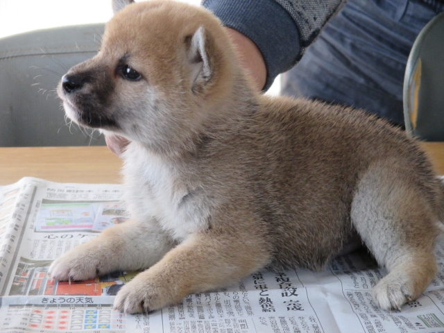初めて見学で伺った際に、並んで日向ぼっこをしている親犬たちを見て、その時点で高橋さんなら安心だと感じました。事前に希望していたこともあり、母犬と父犬を先に見せていただきましたが、母犬のあまりの人懐こい性格にやられてしまい、実は子犬を見る前に是非譲っていただこうという気持ちになっておりました。 見学の時、譲渡の時といろいろな話をさせてもらい、小さな気付きなども折り込んで教えてもらえるのでやはり柴犬ならこうした専門の方が信頼出来ます。 子犬が我が家に来て二週間が経ち、きょうだいのなかでも一回り小さかったこともあり、やはり成長もやや遅い感じではありますが、母性を刺激された先住犬が頑張って見守ってくれており、予想外ではあるものの家族全員一安心です。 この度は本当にありがとうございました。この子が幸せになれるよう精一杯向き合っていきます。 なお、今後検討されている方への注意事項をひとつだけ書いておきます。問い合わせや見学希望に対しての高橋さんからの返信は電話です。メールでの返信ではありませんので気を付けてください。(宮城県 男性)