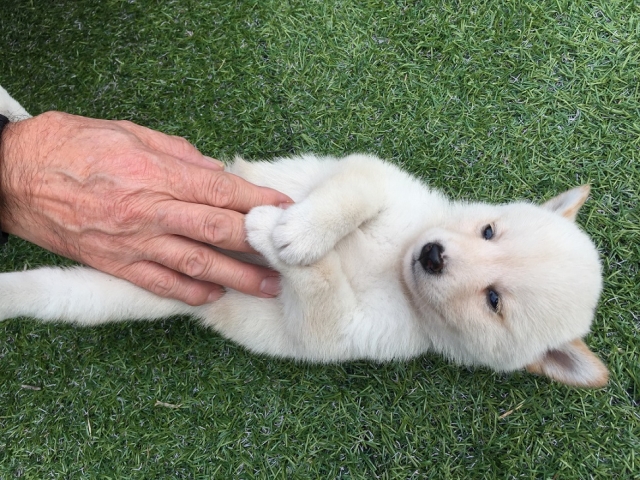 今回、ご縁により白柴を家族として向かい入れることができました。 長崎から沖縄までの移動でしたが、とても元気でみんな大喜びです。 馬越さんには、迅速な対応をしてもらい最初の電話から親切に説明して下さったので、安心して向かい入れることが出来ました。 「分からないことは、いつでも電話してください」との心強いお言葉もありがたく感じております。 家族の一員として大事に育てていきます。本当にありがとうございました。 (沖縄県 男性)