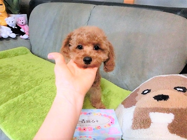 石原様、この度は愛らしいトイプードルの仔犬との素敵なご縁を頂戴しましたこと、心から感謝いたしております。 石原様との幾度のやりとりを重ね、生まれてから私の手元に来てくれるまで、石原様御夫婦の愛情をたっぷり受け、大切に育てていただいた事がよくわかりました。更に先住犬との関係性及び育て方等についてもご助言いただき、大変に助かりました。 また仔犬のお迎えについても、熊本から離れた場所にいる私にとっては悩みの種ではありましたが、その点についてもご配慮いただき、最終的にはスムーズに仔犬を我家に迎えることができ、ゴールデンウィークは賑やかな日々となりました。 これから、先住犬同様、大切には育てて参ります。 この度は素敵なご縁をありがとうございました。(山口県 女性)