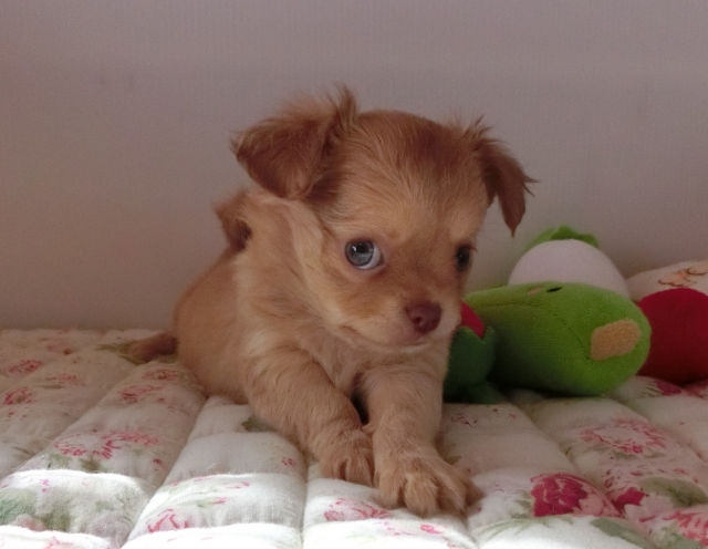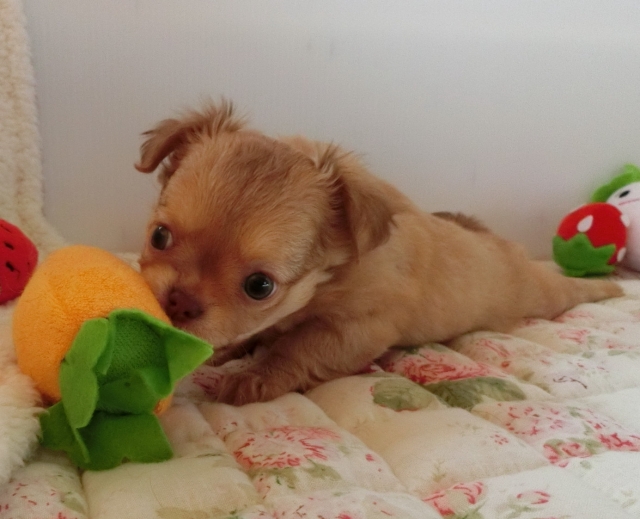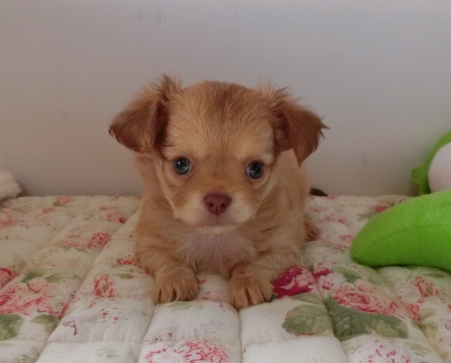 | コメント | 女の子らしい優しい顔立ちの子です。 毛色も淡いチョコフォーンでほんわかした感じの女の子です。 離乳食も順調に進んで、毎日兄元気いっぱい兄妹たちとじゃれ合いながら社会勉強しています。 現時点で確認できる欠点等はございませんが、ワクチン接種の時に改めて獣医さんで簡単な健康診断をして来ます。 お迎えまでにはトイレトレーニングも頑張ります。 お写真だけでは可愛さが伝わり切れません。 是非ご見学にお越しください。 |