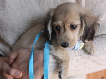 前田ブリーダー様 この度は、とっても可愛い子と出会わせて頂き、有難うございました。とても、幸せです。 始めにお話しをさせていただいて、受け渡し、翌日まで、本当に親切に丁寧にお世話をして頂きました。ご夫婦の優しさが伝わっているような大人しくて、おりこうさんなこの子が、幸せな生涯をおくれるように、精一杯の愛情をそそいでまいります。本当に有難うございました。 これからも、宜しくお願い致します。 (福岡県 女性)