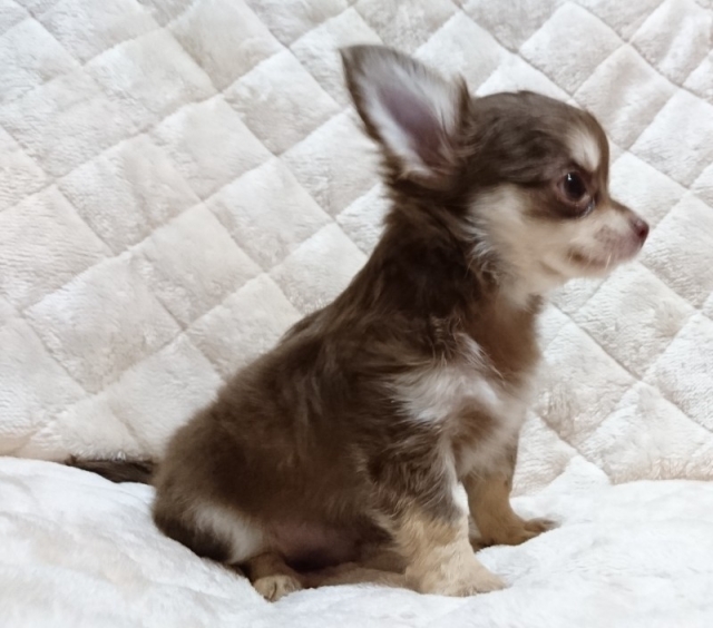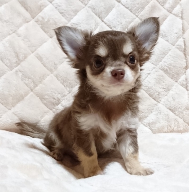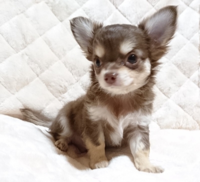 チワワ(ロング) チョコレート&クリーム ♂(男の子) 滋賀県【 ブリーダーズ 】