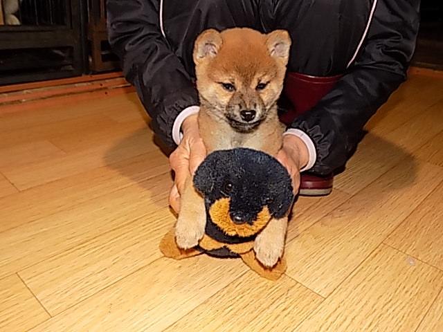 亀井さんとメールや電話で12月13日に待ち合わせ場所で仔犬を初めて見せていただき、ネットで見ていた仔犬よりも、とても可愛い仔犬で気に入りました。亀井さんと奥様も優しそうな方で、愛情をもって犬と過ごしていると想像します。又、リードや数日のフードなども頂きとても良心的で感謝しています。有難うございました。 (和歌山県 男性)(和歌山県 男性)