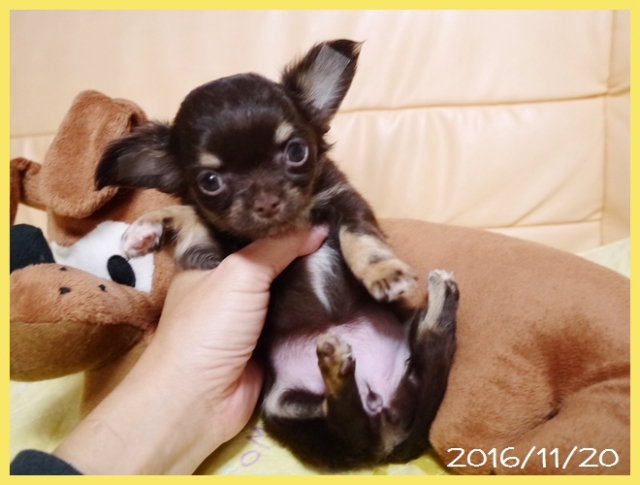 | コメント | パパはJKCチャンピオン直子の北斗【ほくと】君。ママもチャンピオン直娘です。 両親共に2キロ前後のコンパクトなサイズで、とても優しく人懐こい性格です。 12月上旬ころにお迎えいただけます。 素敵なご縁がありますように、、、、、。 |