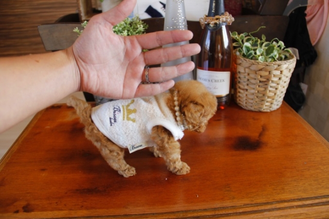 本日、我が家に小さな可愛い女の子のトイプードルがやって来ました。 遠距離という事もあり、暑い時期、飛行機の事なども心配していましだが、家に着いた途端、元気に走り、食欲も旺盛で、今まで大切に育てられてきたのだなぁ、ということがよくわかりました。 連休中にも関わらず、戸田様には、伊丹空港まで連れて来て頂き、こちらの質問にも的確に答えて下さいました。 大変信頼できるブリーダーです。 遠距離で悩まれている方も、安心して新しい家族を迎えられますよ。(兵庫県 男性)