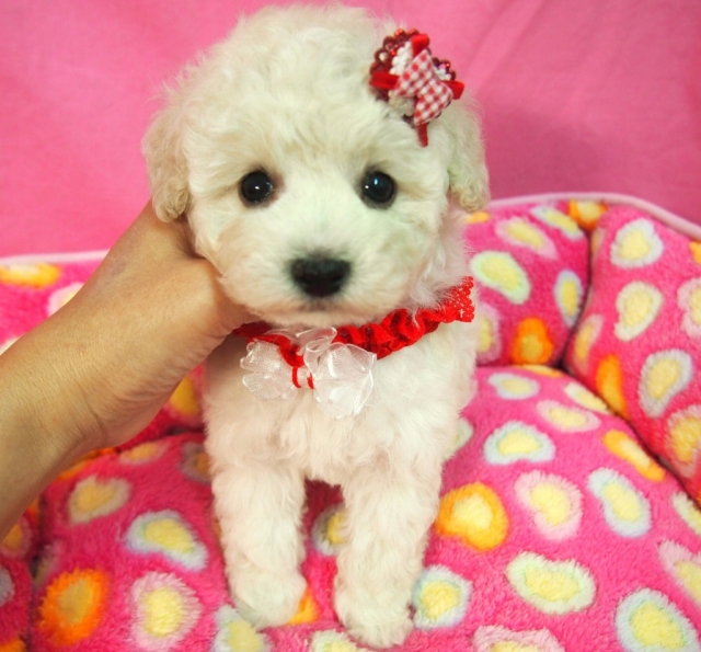 | コメント | 父犬 両親JKCチャンピオン息子 優秀な成績でチャンピオンを完成した両親から産まれた とても可愛い男の子です 父犬の母は、すべてウイナーズビッチとオーバースペシャルにて チャンピオン完成しました。 INTチャンピオンに成るためのCACIB持っています。 2012前期ジャパンケンネルペディグリーアワード プードルランキング第5位です. 母犬 JKCチャンピオン 優秀な成績でチャンピオン完成しました ウイナーズビッチとリザーブウイナーズビッチで チャンピオン完成しました。 両親ともに優良血統です お顔もとても可愛いです。 美人姉妹です。 お顔、体型、歩く姿とても可愛い子です スクエア体型で毛量もありますので色んなカットが似合うと思います 体型はバッチリです 今はお顔剃るのをどうしようかと思いましたが可愛いので のばしています。 根元から真っ白の毛が出てきてますので将来は真っ白に なると思います。 母犬、同世代の子ととても仲良く遊んでいます。 サイズ予想 ティーカップからタイニーを予想しています 小さくて可愛い~ワンランク上のワンちゃんを望まれる方に むいていると思います。 性格はとても良い子で目が合うと、天真爛漫、人懐っこい、いつも尻尾ブンブンで愛らしくとても可愛いです。 良くお話しをじっと聞いて覚えも良く頭の良い子です。 べったりと甘んぼで、そこもとても可愛いです。 女の子らしい子です。 聞き分けのとても良い子です 見ていてほんと可愛いく愛くるしいです。 とても性格が良い子なので初めての方にも、育てやすいと思います。 健康診断済みです。健康状況良好です。 #両親PRAクリアですので発症いたしません。 ☆見学受け付けております(事前のご予約お願い致します) ※当犬舎の犬は繁殖用にはお渡しいたしておりません為お問い合わせご遠慮ください。 ご家庭の家族の一員として生涯幸せな日々を送ってほしいと願っています。 ○譲渡の際には、飼育環境,家族構成等お聞かせ頂いております どうぞ宜しくお願いいたします。 |