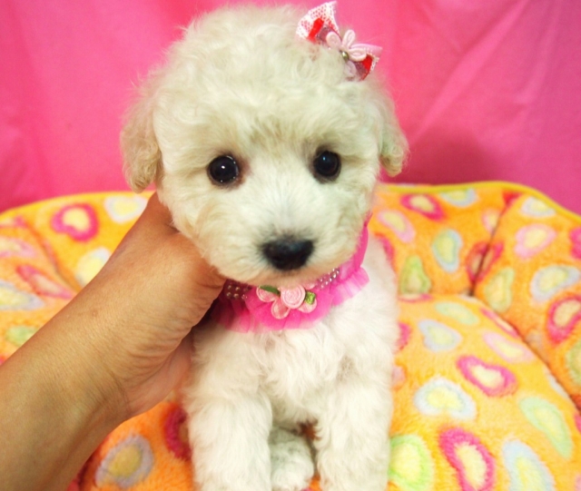 | コメント | 父犬 両親JKCチャンピオン息子 優秀な成績でチャンピオンを完成した両親から産まれた とても可愛い男の子です 父犬の母は、すべてウイナーズビッチとオーバースペシャルにて チャンピオン完成しました。 INTチャンピオンに成るためのCACIB持っています。 2012前期ジャパンケンネルペディグリーアワード プードルランキング第5位です. 母犬 JKCチャンピオン 優秀な成績でチャンピオン完成しました ウイナーズビッチとリザーブウイナーズビッチで チャンピオン完成しました。 両親ともに優良血統です お顔もとても可愛いです。 美人姉妹です。 お顔、体型、歩く姿とても可愛い子です スクエア体型で毛量もありますので色んなカットが似合うと思います 体型はバッチリです 今はお顔剃るのをどうしようかと思いましたが可愛いので のばしています。 根元から真っ白の毛が出てきてますので将来は真っ白に なると思います。 母犬、同世代の子ととても仲良く遊んでいます。 サイズ予想 ティーカップからタイニーを予想しています 小さくて可愛い~ワンランク上のワンちゃんを望まれる方に むいていると思います。 性格はとても良い子で目が合うと、いつも尻尾ブンブンで愛らしくとても可愛いです。 とても可愛らしい性格です。 良くお話しをじっと聞いて覚えも良く頭の良い子です。 べったりと甘んぼで、そこもとても可愛いです。 女の子らしい子です。 聞き分けのとても良い子です 見ていてほんと可愛いく愛くるしいです。 とても性格が良い子なので初めての方にも、育てやすいと思います。 健康診断済みです。健康状況良好です。 #両親PRAクリアですので発症いたしません。 ☆見学受け付けております(事前のご予約お願い致します) ※当犬舎の犬は繁殖用にはお渡しいたしておりません為お問い合わせご遠慮ください。 ご家庭の家族の一員として生涯幸せな日々を送ってほしいと願っています。 ○譲渡の際には、飼育環境,家族構成等お聞かせ頂いております どうぞ宜しくお願いいたします。 |