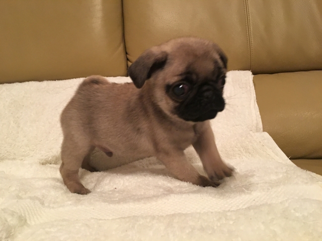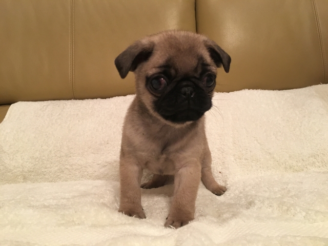 パグの飼育歴は30年以上になります。今年親の代から買っていた 黒パグを亡くしてから家を埋め尽くしているパググッズを見るたびに いつか新しい仔を迎えたいと思うようになりました。 北関東でブリーダーさんを探しているうちに木村様を知り、見学、購入の運びとなりました。 このたび性格も大変おおらかな素晴らしい仔犬をお譲りいただき大変感謝しております。 (茨城県 男性)