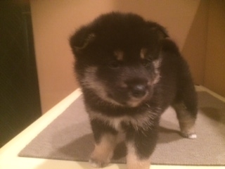 子犬を迎え入れてから1週間がたちましたが、夜鳴き、トイレトレーニングの苦労など全くしていません。とても賢い子で驚かされてばかりいます。黒柴には珍しい柄の入り方に一目惚れをして決めたのですが、性格も穏やかで最高です。この子に決めて本当に良かったです。 津守さんは、凄腕ブリーダーだと思います。これからも的確なアドバイスをよろしくお願いします。 (大阪府 女性)