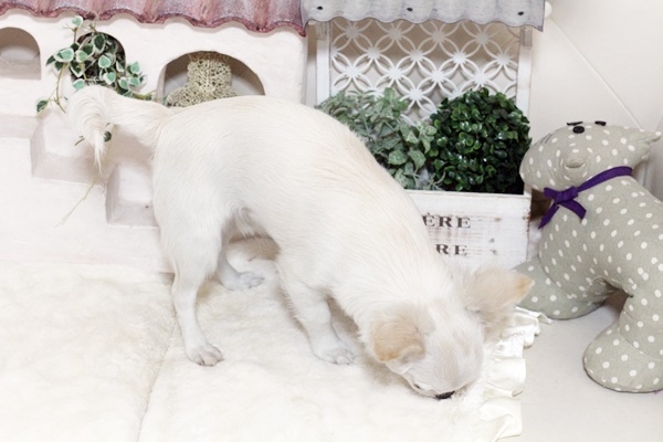 ブリーダーさんからの購入は初めてでしたが、問い合わせなど迅速、丁寧に対応して頂きました。 スタッフの方の対応も良く、とても綺麗な状態での引き渡しでした。 先住犬がいたこともあってかもしれませんが、翌日には慣れた様子で 落ち着いてごはんもたくさん食べていました。人みしりもありません。大事に育てていただいていたのだろうと思います。 1か月経ちましたが、元気いっぱいで笑いを誘ってくれています。 ありがとうございました。(福岡県 女性)