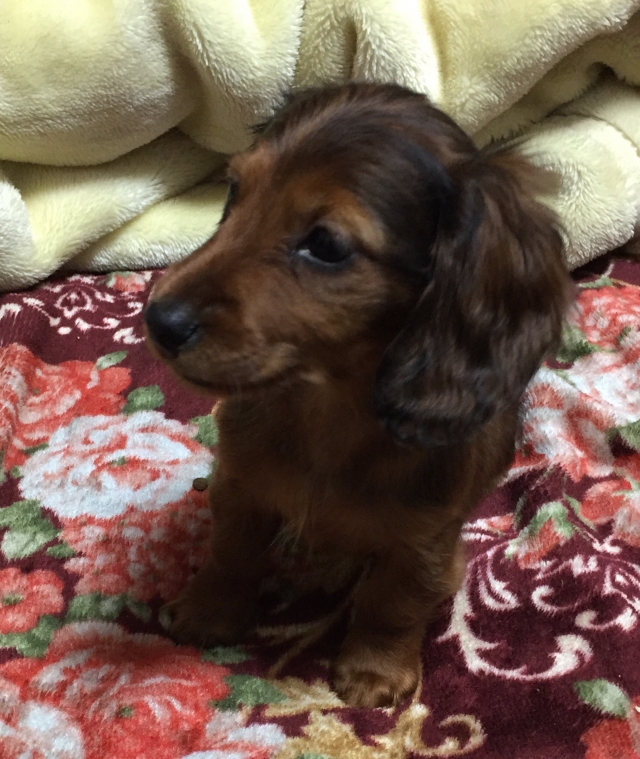 現在カニヘンダックスを飼っており、この度2頭目が欲しいと思っていたところ、細田様の子犬が目に留まりました。以前よりドイツダックスに興味があり、実際お宅に伺って直接子犬また両親犬を見ることができその毛色の素晴らしさに感動しました。またお話しを伺い犬に対する強い思い、深い愛情を持って育てられている事が感じられましたので、その場で即決譲渡させて頂くことになりました。 また、『もし何かありましたら24時間いつでも御連絡下さい』と… 子犬は健康的で元気一杯、人懐っこい性格でした。 ドイツダックスに興味のある方 おすすめのブリーダーさんです!(静岡県 男性)
