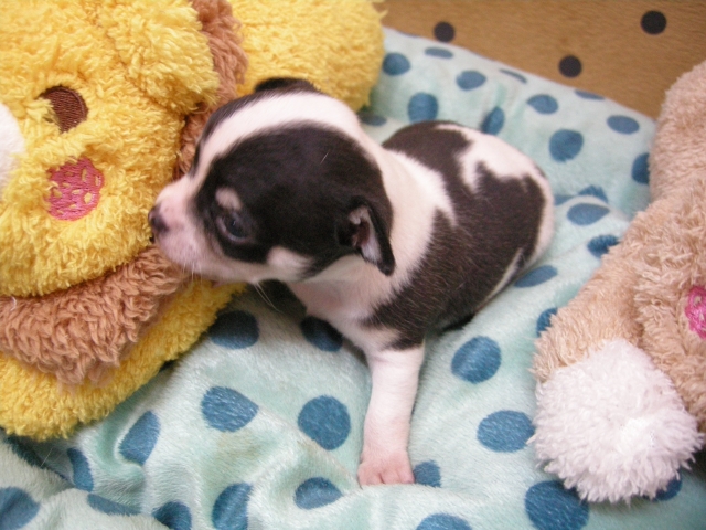 | コメント | お父さんホワイトの『スム』君2㌔! お母さんブラックタンの『チッチ』ちゃん1.6㌔! 小さな小さなチワワをお探しの方超おススメです! 是非、両親も一緒にご見学くださいね! 自信ありのチワワちゃんです! お問い合わせお待ちしています! |