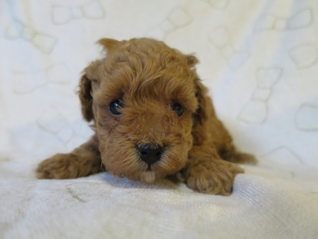 | コメント | 両親アプリコット お父さんはティーカップ 可愛い子 お母さんはアメリカチャンピオンの直子です 12/1の体重は660g 元気に育っています かみ合わせは正常 ヘルニアもありません 獣医の診断ワクチンを接種し お渡しします |