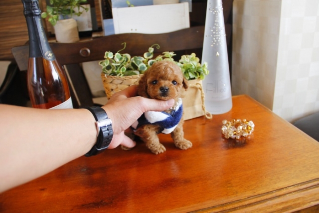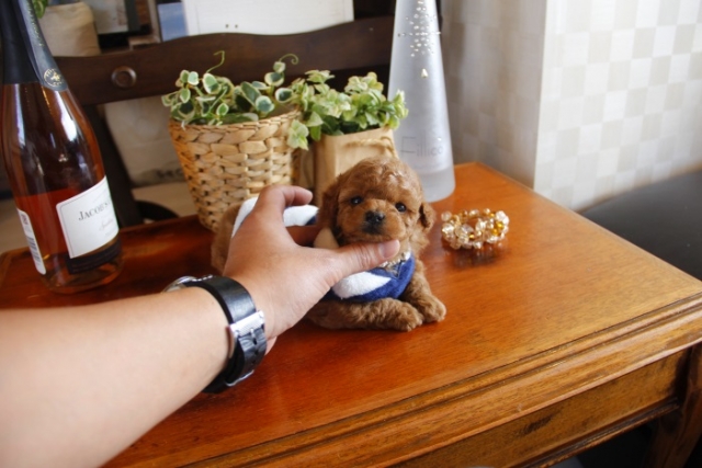 本日、我が家に小さな可愛い女の子のトイプードルがやって来ました。 遠距離という事もあり、暑い時期、飛行機の事なども心配していましだが、家に着いた途端、元気に走り、食欲も旺盛で、今まで大切に育てられてきたのだなぁ、ということがよくわかりました。 連休中にも関わらず、戸田様には、伊丹空港まで連れて来て頂き、こちらの質問にも的確に答えて下さいました。 大変信頼できるブリーダーです。 遠距離で悩まれている方も、安心して新しい家族を迎えられますよ。(兵庫県 男性)