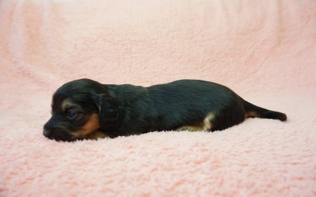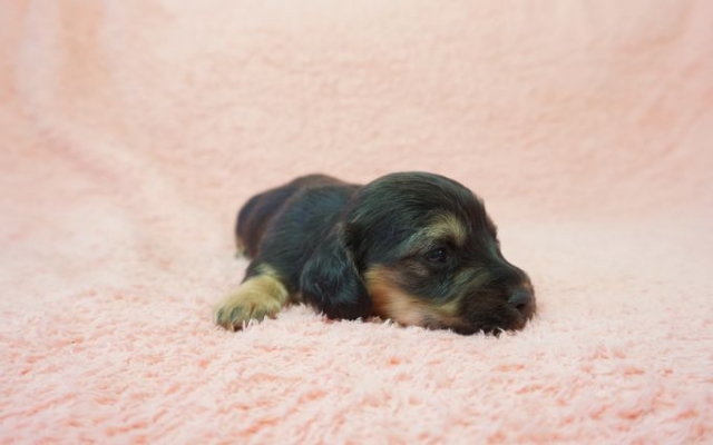ミニチュア・ダックスフンド(ロング) ブラック&クリーム ♀(女の子) 奈良県【 ブリーダーズ 】