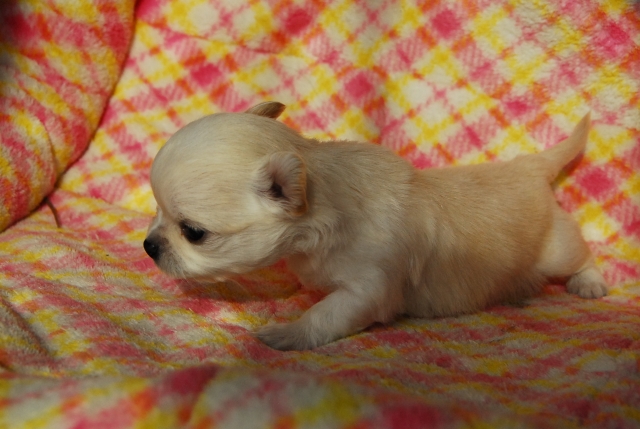 | コメント | 母犬の毛色は、フォーン。父犬は、ブラックタンです。 12月5日: 体重330g。よちよち歩きを始めました。 |