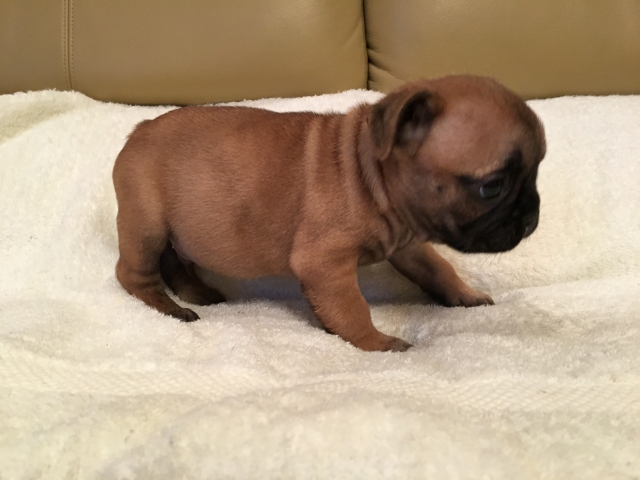 | コメント | お父さん犬ブリンドル お母さん犬クリームの両親から11月1日に元気に産まれた,食欲も旺盛でスクスク育っています。優しいお顔の珍しいフォーンの男の子です。 ご見学お待ちしています。 北関東自動車道の宇都宮上三川インターを降り小山方面に向かい7〜8分の分かりやすい場所です。 |