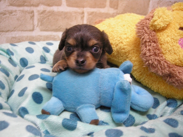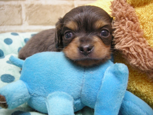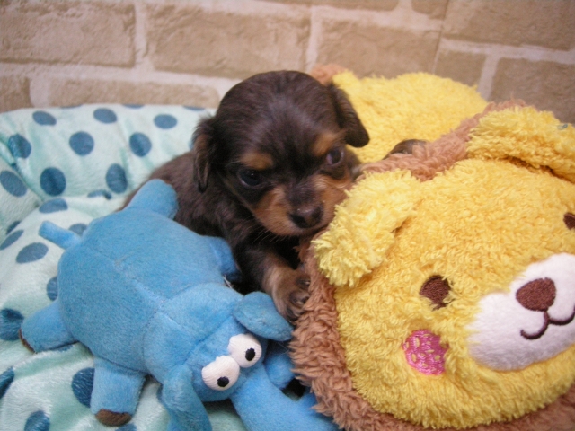 | コメント | お父さんチワワの『コロク』君!チョコクリーム! 2㌔PRAクリアー! お母さんダックスの『アメ』ちゃん!シェイテッドクリーム3.8㌔! これだけ可愛いチワックス君、なかなか見つからないですよ! おとなしいイケメン君です!しかもヘルニアありません! 早いもの勝ち! 皆様からのお問い合わせ、ご見学お待ちしています! 大阪市 濱田 |
