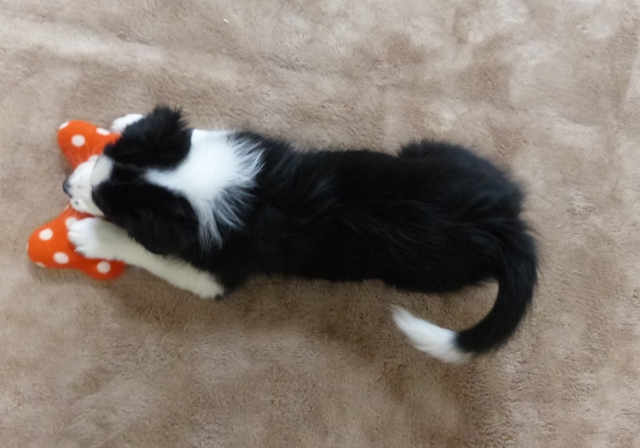 丁寧な対応をしていただきありがとうございました。徳島から大阪まで、車での長時間移動になりましたが、わが家に到着後もとても元気いっぱいです。譲り受けてから3日たちましたが、初日の夜に家族が寝室に行った後、夜鳴きしたぐらいで、普段は無駄吠えもなく、近所への気づかいの心配もありません。宮田ブリーダーさんからは分からないことがあれば連絡してと言っていただいており、ボーダーを初めて飼う当方としましては、非常に心丈夫に思っています。(大阪府 男性)