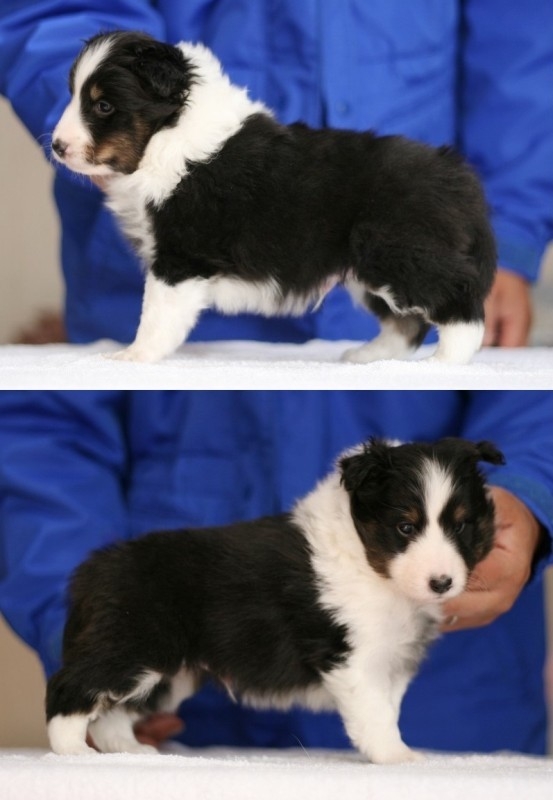 | コメント | 華やかなトライカラーの男の子です! よく食べ、よく眠り元気いっぱい育っています。 今のところお伝えするような欠点はありません。 お父さん犬 JCCチャンピオン犬 お母さん犬 JCCチャンピオン犬 お渡しできる時期は1/18頃からです。 |