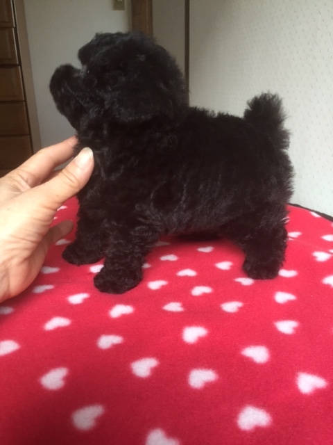 | コメント | 曾祖母から祖母、ママと受け継がれた代々、足の短いドワーフ家系の可愛い男の子 この子で4代目になります^^ 短いのは、足だけではありませんよ。 マズルも短くママ譲りの丸いクリクリした目も しっかり受け継がれております。 ドワーフの子は、大人になっても体高が低い分 見た目 小さく見えますし 短い足でチョコチョコ歩く姿は、可愛いですよ^^ 曾祖母の代からママに至るまで代々 多数の子犬をお譲りして来ましたが お迎え頂いた お客様方からは、聞き分けが良く性格が良いので育てやすいと お褒め頂いて来ましたので この子にも性格の良さが受け継がれていると思います。 今は、真っ黒 クロスケですが 根元からシルバーの毛が伸びて来ますので 1歳になる頃には、今とは全く違う 綺麗なシルバー君に変身します。 この月齢で既に毛量も巻もレッド系の子とは比べものにならない程の申し分なさですから 将来、色々なスタイルに挑戦して頂けますよ^^ 今の所、噛み合わせ、ミスカラー他 身体的な欠点は 御座いません。 ママ シルバー ドワーフ体型 2kちょっとの 小さ目タイニー パパ ホワイト スクエアー体型 2.5kgのタイニー ご飯も順調に食べてくれてますので クリスマス頃にお渡し可能です。 「お願い」 興味本位の見てみたい、触ってみたいだけのペットショップ感覚での見学 ペットショップ、他ブリーダーさんよりの続けての見学は 伝染病予防の為、お断りいたします。 ご家族で良く話し合われた上で お問い合わせ頂けます様 お願い致します。 |