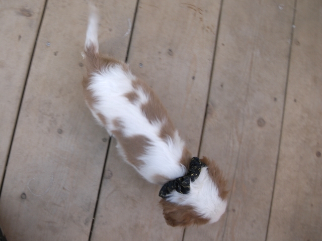 この度はとっても元気な子をありがとうございました。 見学の際は駅まで迎えにきていただき、説明もとても丁寧で安心しました。 空輸で送っていただき、ありがとうございました。 迎えてから一週間が経ち、家にも慣れて、へそ天で寝ています。 トイレトレーニングも、来た時から8割できていて、今ではほとんど失敗しなくなりました。 可愛く元気で、毎日元気に飛び跳ねています。(奈良県 女性)