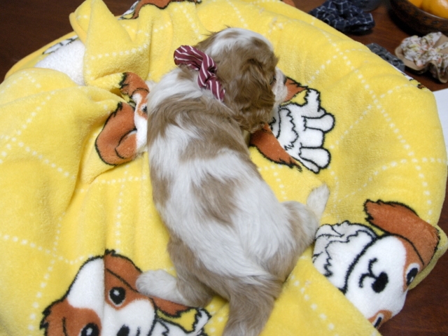 この度はとっても元気な子をありがとうございました。 見学の際は駅まで迎えにきていただき、説明もとても丁寧で安心しました。 空輸で送っていただき、ありがとうございました。 迎えてから一週間が経ち、家にも慣れて、へそ天で寝ています。 トイレトレーニングも、来た時から8割できていて、今ではほとんど失敗しなくなりました。 可愛く元気で、毎日元気に飛び跳ねています。(奈良県 女性)