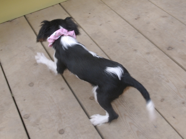 この度はとっても元気な子をありがとうございました。 見学の際は駅まで迎えにきていただき、説明もとても丁寧で安心しました。 空輸で送っていただき、ありがとうございました。 迎えてから一週間が経ち、家にも慣れて、へそ天で寝ています。 トイレトレーニングも、来た時から8割できていて、今ではほとんど失敗しなくなりました。 可愛く元気で、毎日元気に飛び跳ねています。(奈良県 女性)