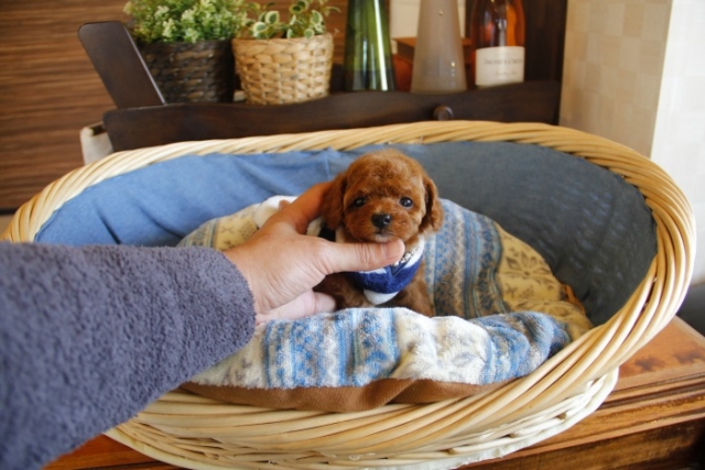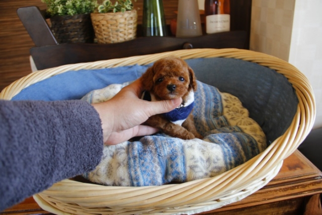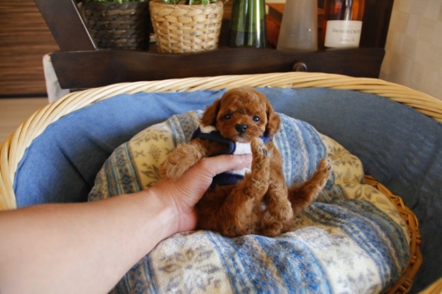 本日、我が家に小さな可愛い女の子のトイプードルがやって来ました。 遠距離という事もあり、暑い時期、飛行機の事なども心配していましだが、家に着いた途端、元気に走り、食欲も旺盛で、今まで大切に育てられてきたのだなぁ、ということがよくわかりました。 連休中にも関わらず、戸田様には、伊丹空港まで連れて来て頂き、こちらの質問にも的確に答えて下さいました。 大変信頼できるブリーダーです。 遠距離で悩まれている方も、安心して新しい家族を迎えられますよ。(兵庫県 男性)