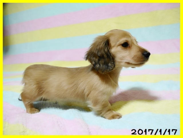 | コメント | 超優秀血統の子犬ちゃんです。 パパはカナダチャンピオンのスター君(カニンヘンロングダックス、シェーデットクリーム) ママはJKCチャンピオンのしらゆきちゃん(カニンヘンロングダックス、シェーデットクリーム) 子犬はクリームの男の子とシェーデットクリームの男の子の2頭兄弟で生まれました。 親犬はPRAのDNA検査をしておりますので、子犬ちゃんが将来的にPRAを発症する心配はありませんのでご安心ください。 色素もしっかりとしていてお鼻も真っ黒でとてもかわいらしいぼくちゃんです。 ワクチン接種と健康診断を実施してから、2017年1月下旬頃にお引き渡しが可能となります。 見学やご予約もしていただけますので、お問い合わせをお待ちしております。 |