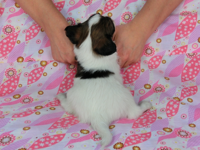 | コメント | 父ピカード JKCチャンピオンイギリスチャンピオンアークの血統 母 ルピシア JKCチャンピオン孫 イギリスチャンピオンアークの血統 イギリス×イギリスの理想的なラインブリードです。 成長時の予想体重は2.5~3.5キロ 現在好ましくないかみ合わせ、ヘルニアはありません。欠点が出てきた際は改めてお知らせいたします。 当犬舎はパピヨン一筋50年の日本で一番歴史のあるパピヨン専門犬舎です。 日本中の国産のパピヨンで当犬舎の血統が入っていない犬は存在しません。 ご見学は大歓迎ですのでどうぞご連絡の上、おいでください。365日年中無休です。 2013年9月1日より「動物の愛護と管理に関する法律」の改正によって、「生体販売時の現物確認・対面販売」が義務規定となりましたので、最低一度は直接犬舎までご来舎いただかなくてはなりません。従いまして今までのようにネットで写真、動画をご覧になっただけではご購入ができなくなりました。これはすべてのブリーダー・ペットショップも例外がありませんので、ご理解、ご協力のほど御願い申し上げます。 手続きに時間がかるため海外への輸出はいたしません。 スタッフの取得資格 (社)JKC 全犬種審査員2名(社)JKC 単犬種パピヨン審査員1名(社)JKC スチュアート1名(社)JKC A級ハンドラー1名 (社)JKC C級ハンドラー1名 (社)日本愛玩動物協会 愛玩動物飼養管理士1級1名 (社)日本愛玩動物協会 愛玩動物飼養管理士2級2名 (学)AIK 認定グルーマーライセンス1名(学)AIK 家庭犬しつけインストラクター1名(社)ICCキャットグルーマーライセンスB級1名 (学)AIK トレーナーライセンス1名 動物の愛護及び管理に関する法律による動物取扱責任者2名 |