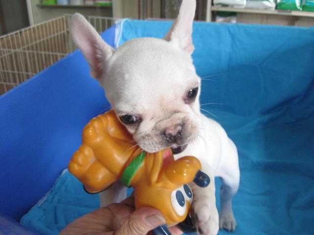 | コメント | 不動の人気フレンチちゃんです(^^)/ 3匹兄弟で毎日遊んだり喧嘩したりして過ごしています 兄弟喧嘩は凄いですよ~~~ 発育も良くスクスク育っています。 コロコロの健康優良児です 実物のぶさかわちゃんを是非見に来て下さい。 見学のご予約は随時受け付けております。 どんな小さなことでもお気軽にお問合せ下さい。 |