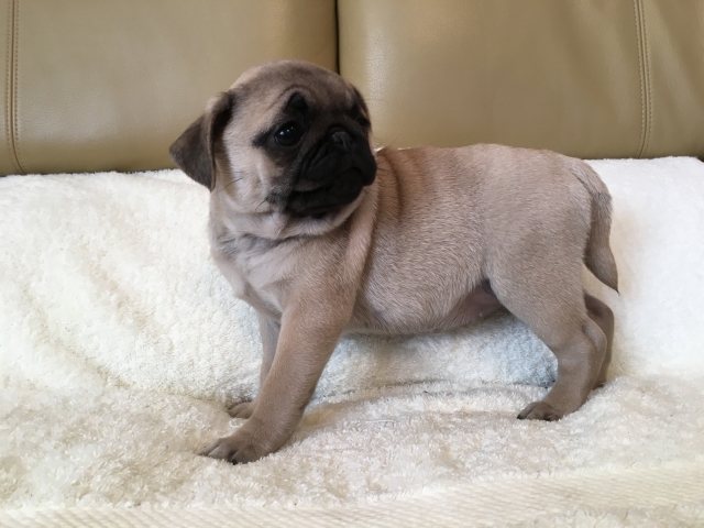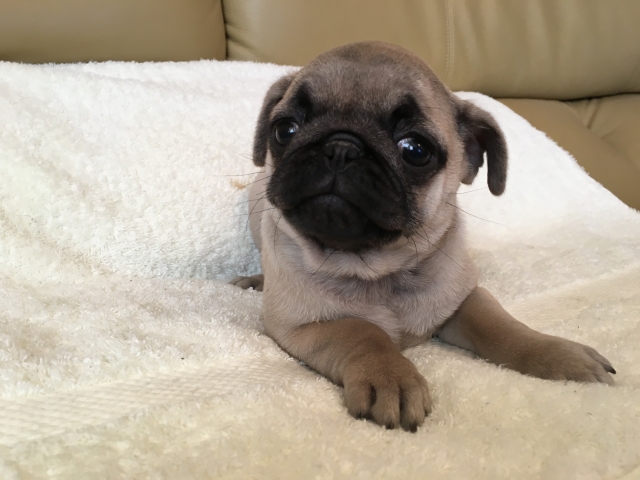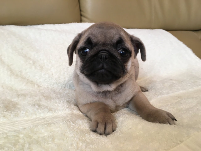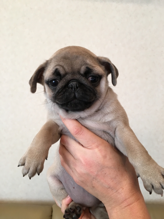 パグの飼育歴は30年以上になります。今年親の代から買っていた 黒パグを亡くしてから家を埋め尽くしているパググッズを見るたびに いつか新しい仔を迎えたいと思うようになりました。 北関東でブリーダーさんを探しているうちに木村様を知り、見学、購入の運びとなりました。 このたび性格も大変おおらかな素晴らしい仔犬をお譲りいただき大変感謝しております。 (茨城県 男性)