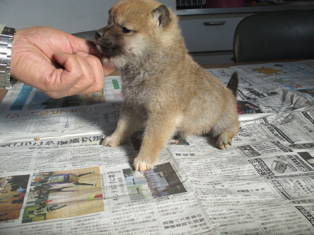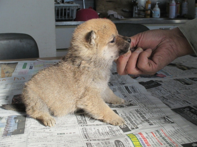 初めて見学で伺った際に、並んで日向ぼっこをしている親犬たちを見て、その時点で高橋さんなら安心だと感じました。事前に希望していたこともあり、母犬と父犬を先に見せていただきましたが、母犬のあまりの人懐こい性格にやられてしまい、実は子犬を見る前に是非譲っていただこうという気持ちになっておりました。 見学の時、譲渡の時といろいろな話をさせてもらい、小さな気付きなども折り込んで教えてもらえるのでやはり柴犬ならこうした専門の方が信頼出来ます。 子犬が我が家に来て二週間が経ち、きょうだいのなかでも一回り小さかったこともあり、やはり成長もやや遅い感じではありますが、母性を刺激された先住犬が頑張って見守ってくれており、予想外ではあるものの家族全員一安心です。 この度は本当にありがとうございました。この子が幸せになれるよう精一杯向き合っていきます。 なお、今後検討されている方への注意事項をひとつだけ書いておきます。問い合わせや見学希望に対しての高橋さんからの返信は電話です。メールでの返信ではありませんので気を付けてください。(宮城県 男性)