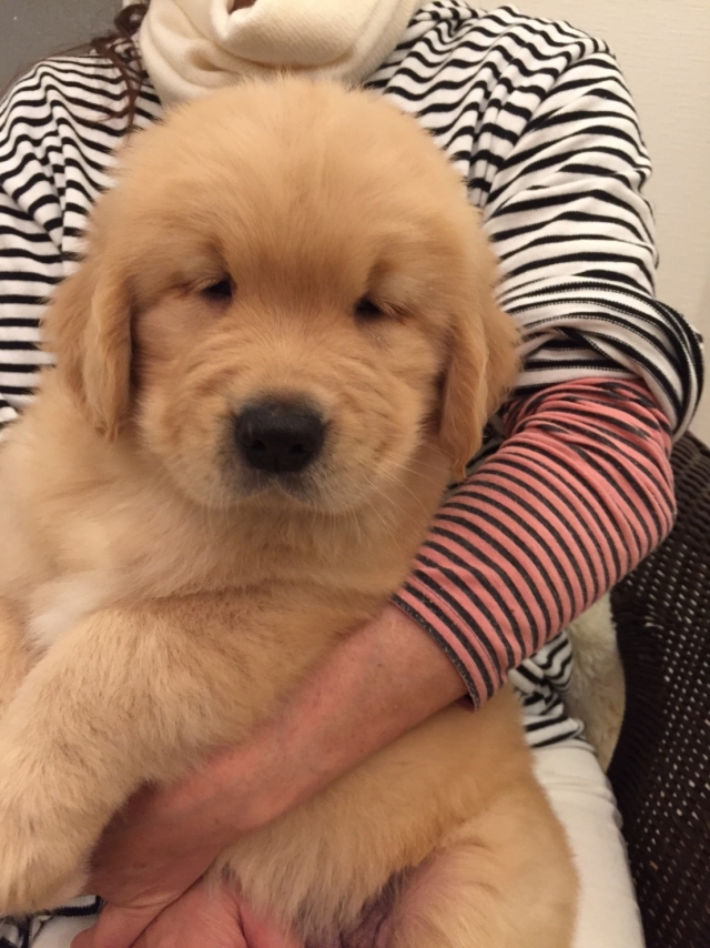 8月に十年間飼っていたゴールデンを病気で無くし、新しい犬を飼おうか迷っていた時このサイトを見つけ中村ブリーダーの仔犬に一目惚れしてしまい、夜分でしたが連絡を入れさせていただきましたが直ぐにお返事頂きビックリでした。 引き取りに伺った時も母犬や兄弟たちにも逢わせてい頂き優しい御夫妻の人柄が良く伺えました。 帰るときも「遠くからおいでなので」と離乳食やウエットティッシュ、ゴミ袋、水、食事用のカップまで用意していただき恐縮してしまいました。 お見送りの時の寂しそうな顔が印象的でした。 大事に育てます。 ありがとうございました。 (岐阜県 男性)