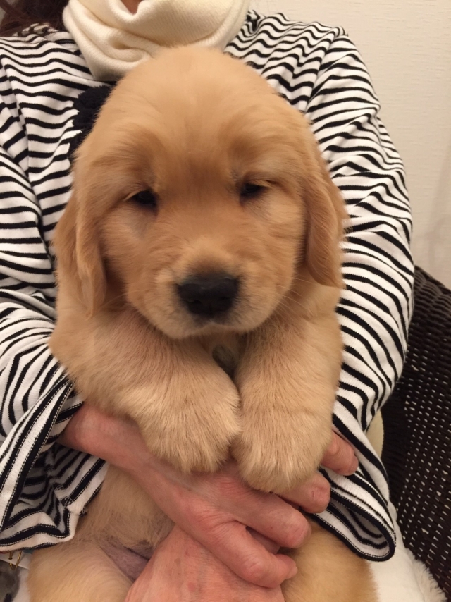 8月に十年間飼っていたゴールデンを病気で無くし、新しい犬を飼おうか迷っていた時このサイトを見つけ中村ブリーダーの仔犬に一目惚れしてしまい、夜分でしたが連絡を入れさせていただきましたが直ぐにお返事頂きビックリでした。 引き取りに伺った時も母犬や兄弟たちにも逢わせてい頂き優しい御夫妻の人柄が良く伺えました。 帰るときも「遠くからおいでなので」と離乳食やウエットティッシュ、ゴミ袋、水、食事用のカップまで用意していただき恐縮してしまいました。 お見送りの時の寂しそうな顔が印象的でした。 大事に育てます。 ありがとうございました。 (岐阜県 男性)