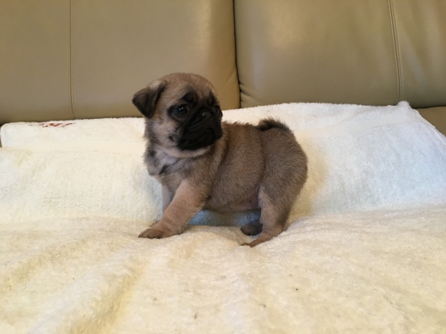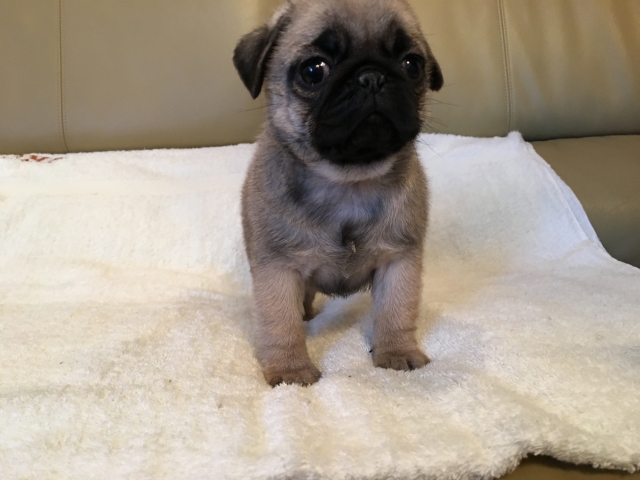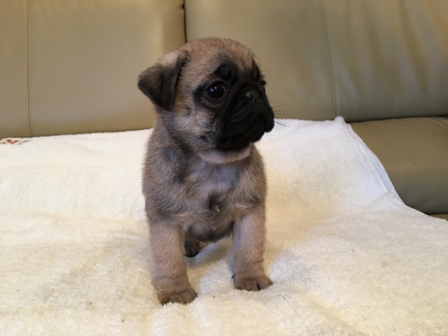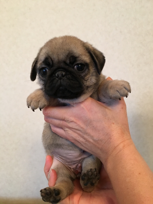 パグの飼育歴は30年以上になります。今年親の代から買っていた 黒パグを亡くしてから家を埋め尽くしているパググッズを見るたびに いつか新しい仔を迎えたいと思うようになりました。 北関東でブリーダーさんを探しているうちに木村様を知り、見学、購入の運びとなりました。 このたび性格も大変おおらかな素晴らしい仔犬をお譲りいただき大変感謝しております。 (茨城県 男性)