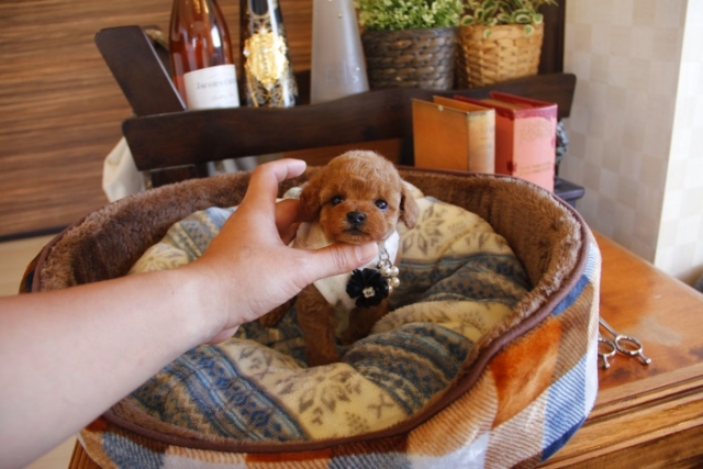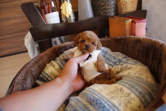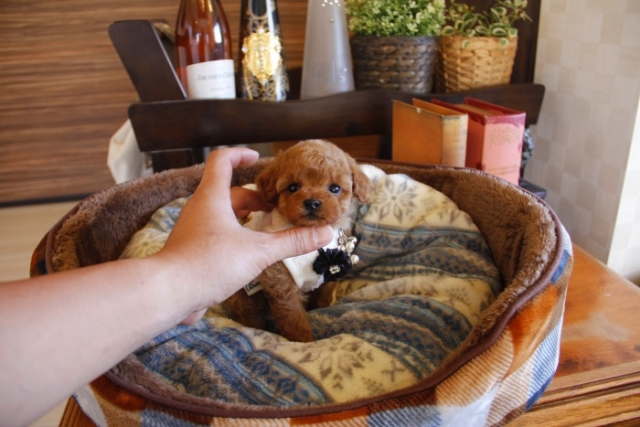 本日、我が家に小さな可愛い女の子のトイプードルがやって来ました。 遠距離という事もあり、暑い時期、飛行機の事なども心配していましだが、家に着いた途端、元気に走り、食欲も旺盛で、今まで大切に育てられてきたのだなぁ、ということがよくわかりました。 連休中にも関わらず、戸田様には、伊丹空港まで連れて来て頂き、こちらの質問にも的確に答えて下さいました。 大変信頼できるブリーダーです。 遠距離で悩まれている方も、安心して新しい家族を迎えられますよ。(兵庫県 男性)