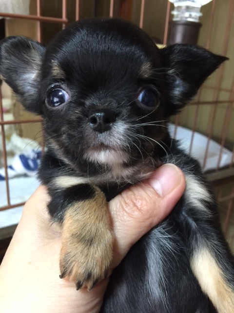| コメント | 2回ワクチン接種済、簡易健康診断済 心音・検便・股関節・触診等異常無し お鼻短かく可愛い子です。 現在お顔が黒いので地味感じますが 成長過程で少しずつお顔の黒は抜けていくと思います。 ご家族の同意、チワワを飼える環境の方 お気軽にお問い合わせお待ちしています。 |