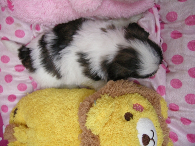 この度は可愛いカニンヘンダックスの女の子を譲っていただきありがとうございます。濱田さんのところからのお迎えは2頭目で、可愛さは初めの子でわかりすぎるほどわかっていたので絶対可愛くなること間違いなしで決めさせていただきました。 どんなことでも相談してくださいねと言う心強い言葉や、可愛い動画を送っていただいたりと本当によくしていただけました。 ワンちゃんは初日からアイコンタクトばっちり、よく食べ、よく寝て、元気いっぱいです。 家にきて1週間、先住犬と遊びながら元気に成長中です。 またよろしくお願いします。(大阪府 女性)