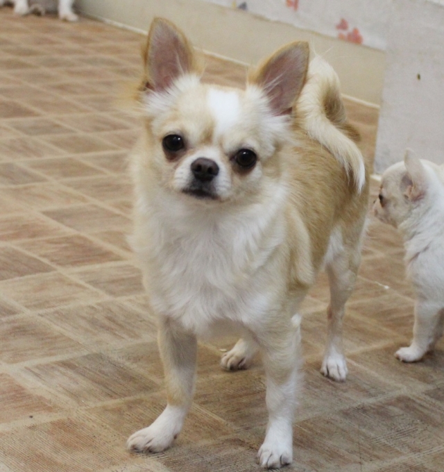 | コメント | マズルの詰まった真ん丸お顔、アップルヘッドの可愛い男の子です。 足が短いドワーフタイプです。 性格は明るく人も犬も大好きなしっぽプリプリ君ですよ♪ お父さん フォーン 2.5kg 画像4枚目 お母さん クリーム 1.9kg 画像3枚目 |