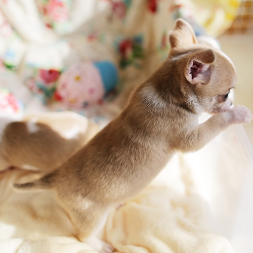 数ヶ月間色々な所で心に残る様なチワワを探していました、サイトの写真を見つけた時どうしても会ってみたいと思うチワワちゃんでした。 問い合わせにもすぐお返事も頂き 実際見学もとても大切にしている様子がわかりました、今では家族の一員で元気に過ごしています。 とても良い出会い感謝しています。(大阪府 女性)