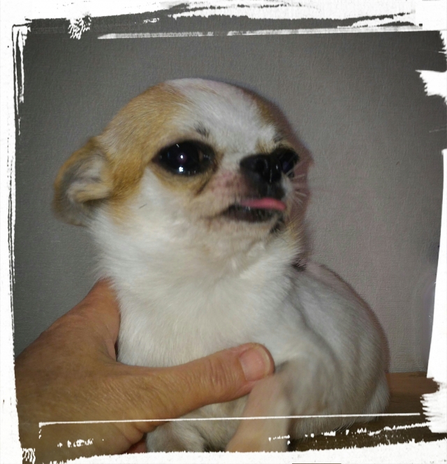| コメント | 現在1300グラムの、 小ぶりな男の子です。 ひとまわり育っても 2キロ未満かと思われます。 舌をのぞかせていますが 噛み合わせはしっかりしています。 睾丸も確認でき、お婿さん候補で 育ててきましたが、サイズが小さい為 オーナー様募集をしております。 健康状態も良く、食欲もあり 気になる箇所も見られません。 ワクチン2回種済みです。 明るく、優しい性格の子です。 他のチワワ達とも仲良く過ごしていますので 先住ワンコのいらっしゃるご家庭でも 問題はないと思います。 |