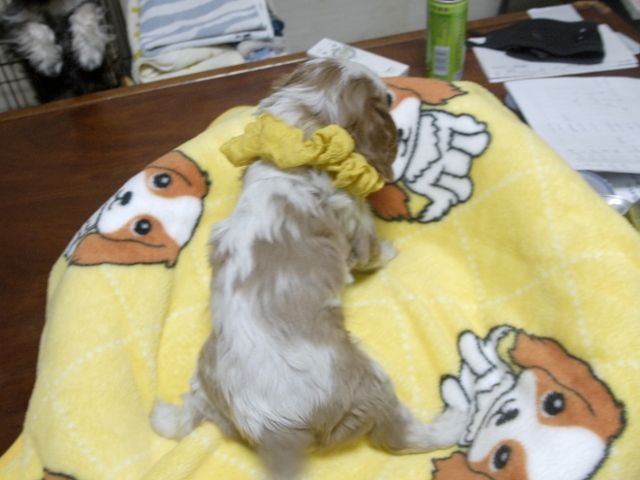 この度はとっても元気な子をありがとうございました。 見学の際は駅まで迎えにきていただき、説明もとても丁寧で安心しました。 空輸で送っていただき、ありがとうございました。 迎えてから一週間が経ち、家にも慣れて、へそ天で寝ています。 トイレトレーニングも、来た時から8割できていて、今ではほとんど失敗しなくなりました。 可愛く元気で、毎日元気に飛び跳ねています。(奈良県 女性)