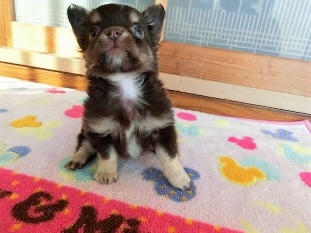 チワワ(ロング) チョコタンホワイト ♂(男の子) 熊本県【 ブリーダーズ 】