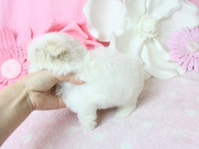 | コメント | 1月16日撮影 極小サイズのお顔まんまるでお鼻も短く アイラインもくっきり入っていて とっても可愛い子です!!! 手足も短く胴も詰まってます。 毛量も多いめです。 性格はおとなしいですが、人なつっこい子です。 1月16日現在 生後67日で体重430gです。 成犬時予想体重は~1.5kg前後の極小サイズ予想です。 父 1.1kg 母1.7kg 1回目のワクチンは接種済みです。 |