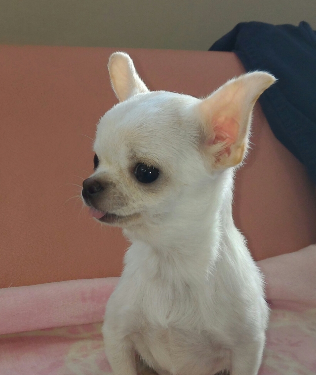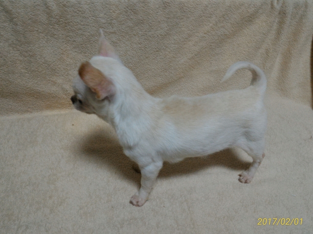 | コメント | 現在、1キログラムと 小ぶりな女の子です。 元気に良く遊び、食欲もあり 他のチワワ達とも仲良く過ごしています。 ワクチンも、2回が済んでいます。 トイレも、ほぼ失敗せず シーツでしています。 両親とも、チャンピオン血統で、 小柄な父母ですので、この子も キロ程と予想しています。 |