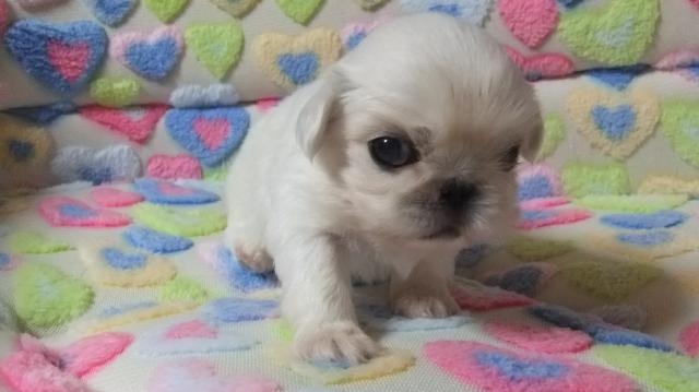 | コメント | 父 ホワイト 母 フォーン ♂1♀3スクスク育っています ホワイト ♀C 現在欠点は見当たりません。 撮影日 2017.1.17 生後24日 見学歓迎いたします 両親犬 子犬全頭 お見せできます。 常盤道 つくば牛久IC 5分(つくばイオン 5分) JR 常磐線 荒川沖駅 送迎致します(約2k) 最新画像 メールにて (1月17日から1週間 パソコン機種交換の為対応不可になります) |