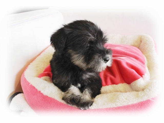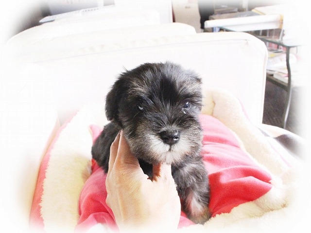 シュナウザーを主力にされているブリーダーさんだと認識しており、ボスちゃんはどうかなあと正直不安でしたがとても可愛く健康的なボスちゃんをいただきました。 掲載されていた写真より実物は想像以上に可愛くて即決し見学させていただいたその日に連れて帰りました。連絡をして、翌日行きますぅって勝手な申し出にも関わらず敏速かつ親切に対応して頂き大満足です。契約に対しても一つ一つ丁寧に説明してくださり、わかりやすかったです。この度は可愛いボスちゃんとのご縁をいただき、本当に有り難うございました。 (大阪府 女性)