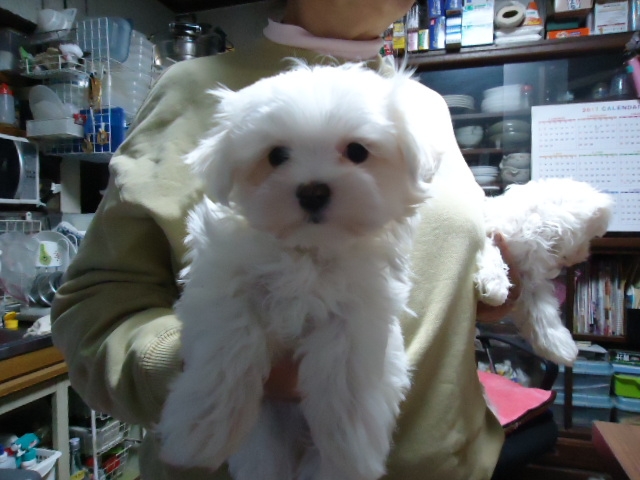 この度ご縁がありまして村島ブリーダーさんから可愛いマルチーズの男の子を譲って頂きました。犬を飼うことは初めてだったのですが2度ほど見学し、アドバイスも頂き、安心して子犬を迎えることができました。何かあれば電話でいつでも相談にのって下さるとのことで心強いです。子犬もとても元気でおトイレもすぐに覚えてとってもいい子です。ありがとうございました。(栃木県 女性)